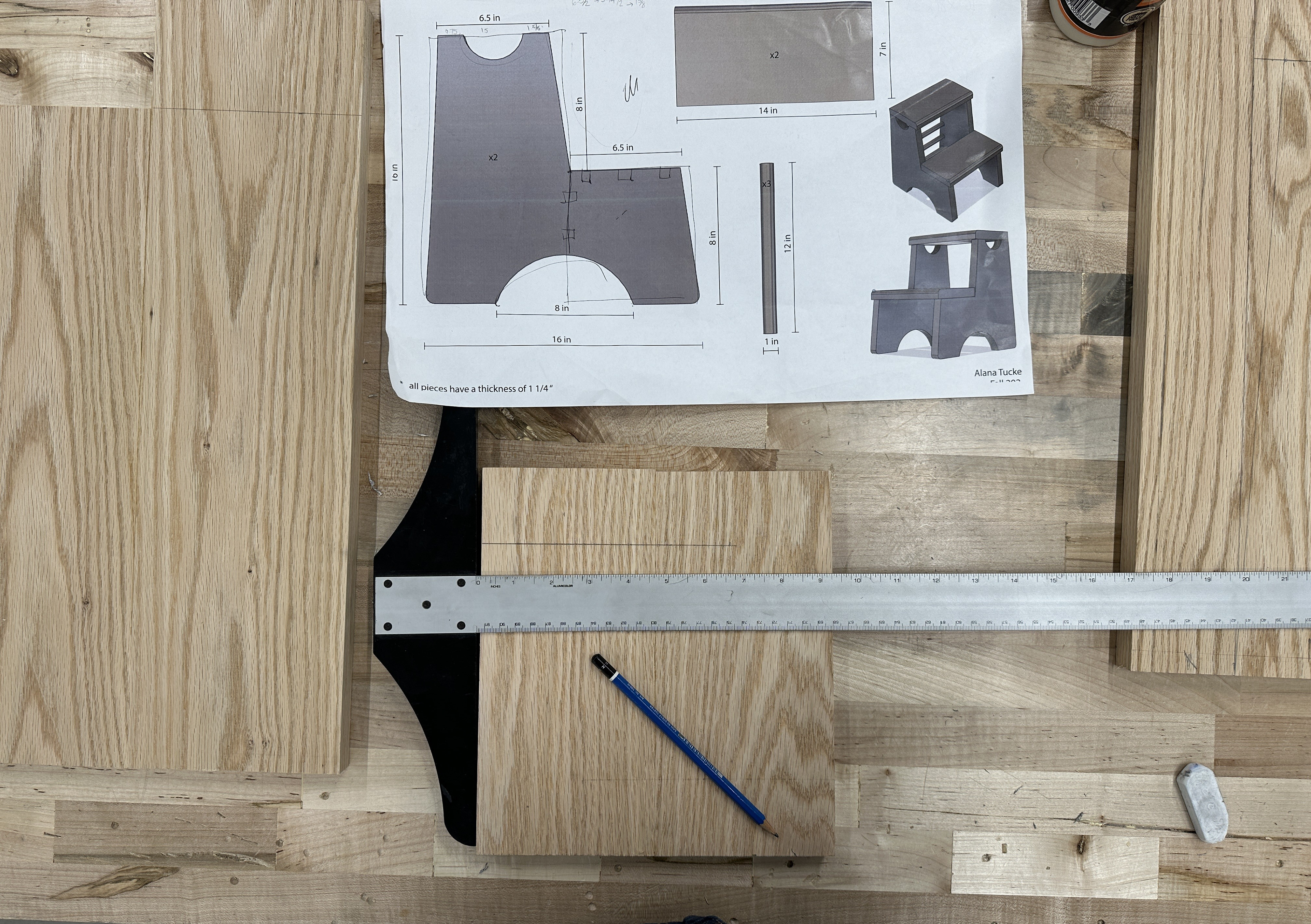 My material of choice was Red Oak. This variety of wood was an intentional choice as my grandfather had built my sister a bench out of it, so I wanted the pieces to match. I wanted to use recycled wood for this project, and I was able to find enough scrap pieces of the variety to fulfill my needs.