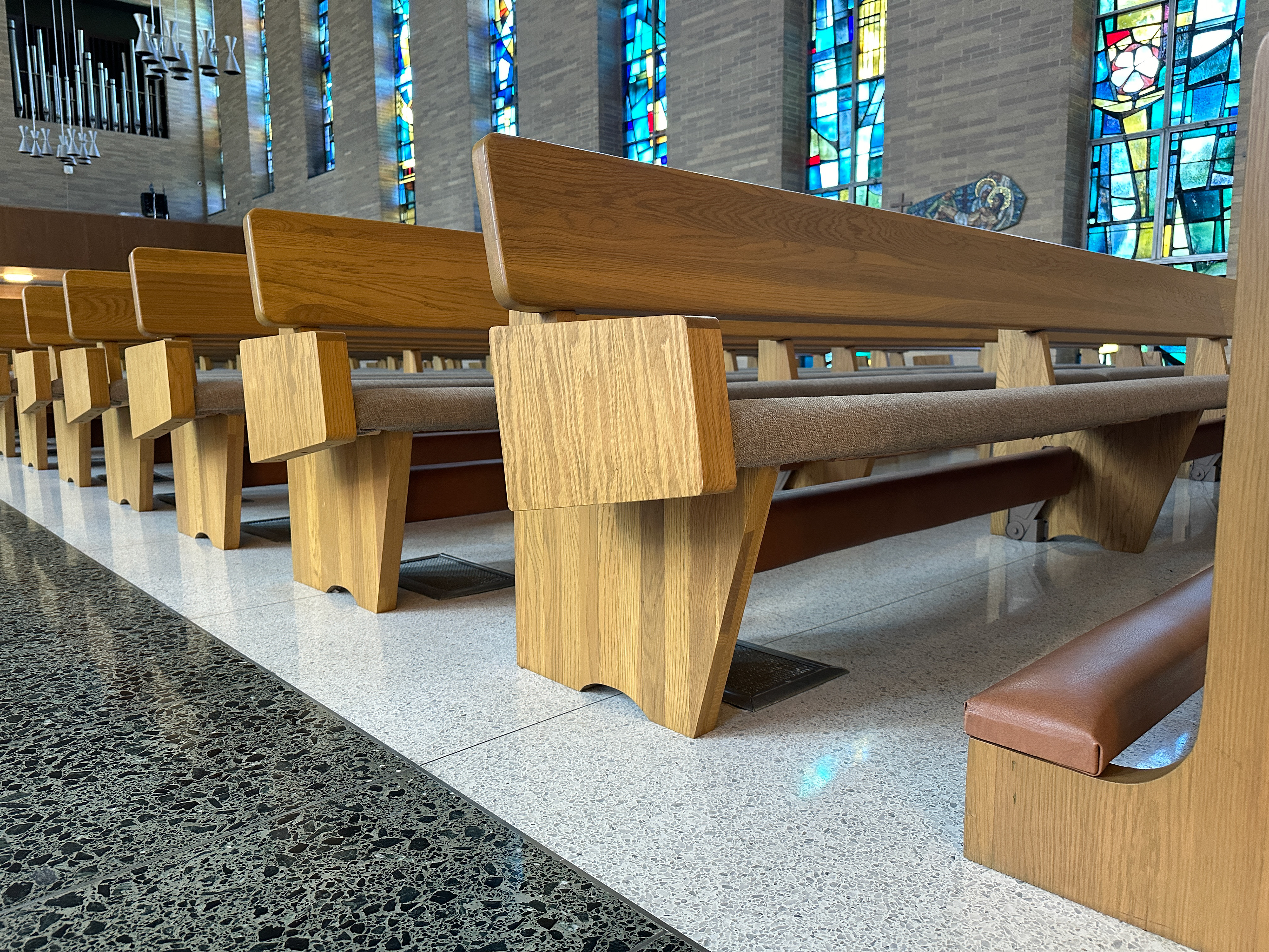 The pews called to me immediately because of their banding and unique angled design. They were unlike any other I had seen.
